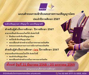 ข่าวประชาสัมพันธ์ แบบสำรวจการเข้ารับพระราชทานปริญญาบัตร ประจำปีการศึกษา 2567 Posted มกราคม 7, 2026 Admin_academic2
