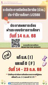 ข่าวประกาศข่าวประชาสัมพันธ์ ประกาศผลการเรียนระดับประกาศนียบัตรวิชาชีพ (ปวช.) Posted ตุลาคม 14, 2025ตุลาคม 14, 2025 Admin_academic2
