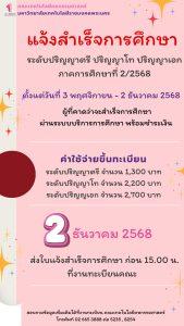 ข่าวประกาศข่าวประชาสัมพันธ์ แจ้งสำเร็จการศึกษา ระดับ ปริญญาตรี โท เอก ภาคการศึกษาที่ 2/2568 Posted พฤศจิกายน 5, 2025 Admin_academic2