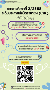 ภาคการศึกษาที่ 2/2568 ระดับปริญญา ตรี/โท/เอก