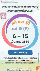 ข่าวประชาสัมพันธ์ แก้ 0 ม.ส. ระดับประกาศนียบัตรวิชาชีพ ปีการศึกษา 2/2568 Posted มีนาคม 6, 2026 Admin_academic2